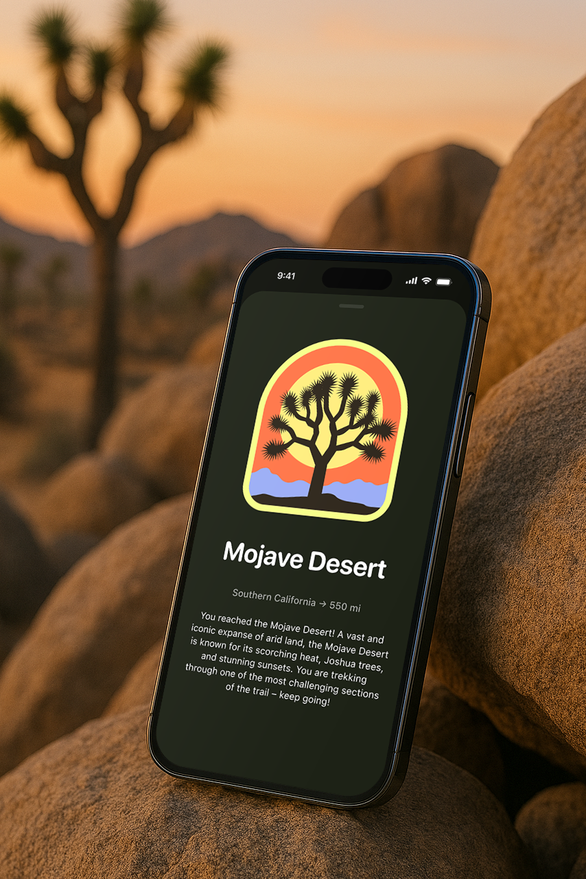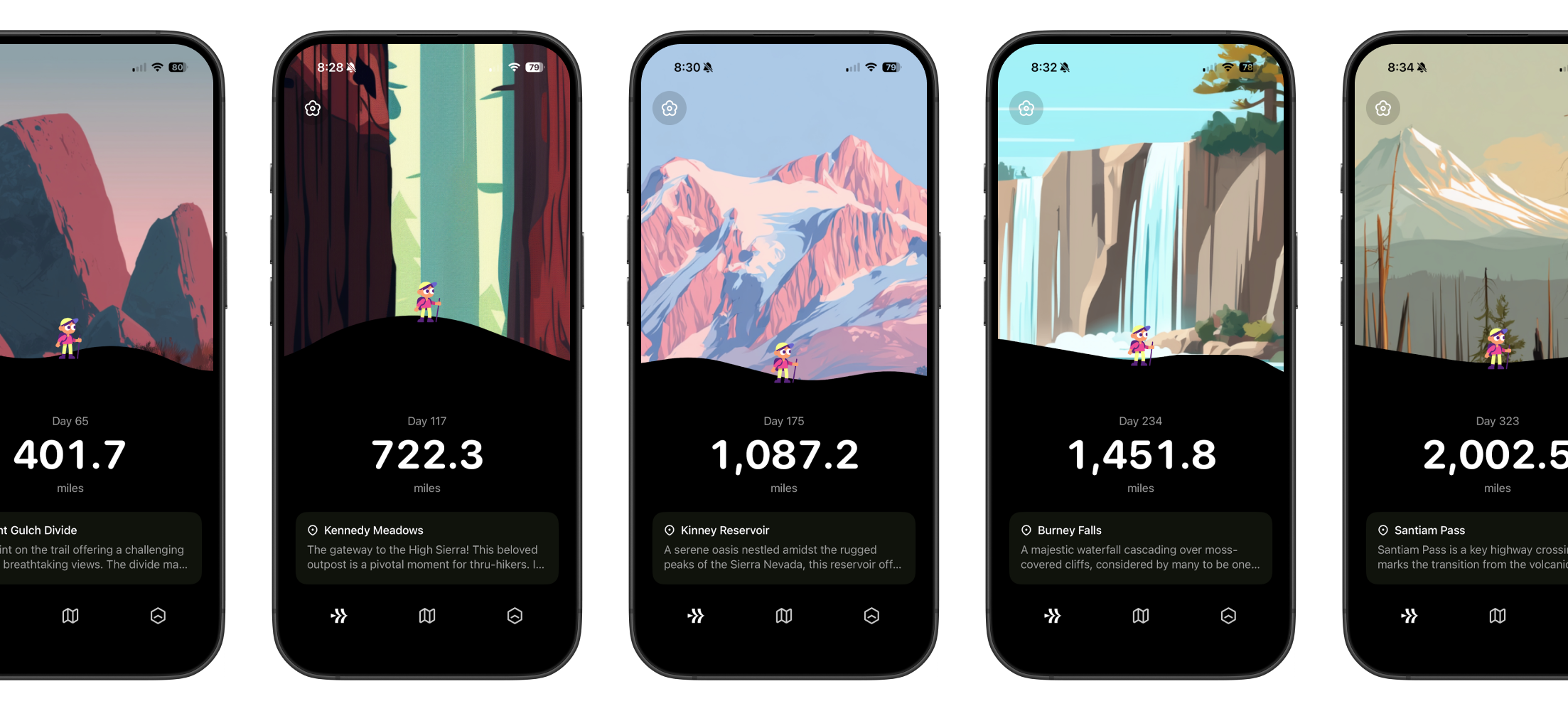 the trail. Each new stretch of mileage unlocks a new piece of landscape art – a reminder that every little
